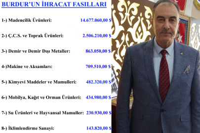 Başkan Yusuf KEYİK ekim ayında; bazı ülkelerle ihracat hacmini gösteren tabloyu ve Burdur’un 2023 yılı için ihracat fasıllarındaki değişimleri gösteren tabloyu da açıkladı.