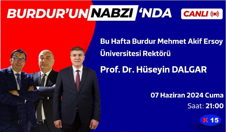 Burdur Mehmet Akif Ersoy Üniversitesi Rektörü Prof. Dr. Hüseyin Dalgar öncülüğünde oluşturulan MAKÜ Stüdyosundan ilk canlı yayın Kanal 15 iş birliğinde gerçekleştirilecek. Kanal 15 ekranlarında Cuma akşamları yayınlanan “Burdur’un Nabzı” programı Bugün akşam sezon finaliyle MAKÜ Stüdyosundan canlı olarak ekranlara gelecek. Bilal Karasakal’ın moderatörlüğünü yaptığı programın sezon finali bölümünde Burdur Mehmet Akif Ersoy Üniversitesi Rektörü Prof. Dr. Hüseyin Dalgar ve Burdur Gazeteciler Cemiyeti Başkanı Kürşat Tuncel yer alacak. Bugün akşam saat 21.00’de MAKÜ Stüdyosundan yayınlanacak olan “Burdur’un Nabzı” programının sezon finali bölümünü sakın kaçırmayın.