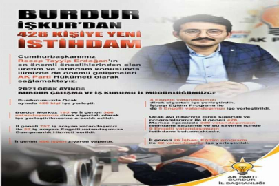 Burdur'da İşkur ile Ocak ayında 428 kişi işe yerleşti. Konu hakkında açıklama yapan AK Parti Burdur İl Başkanı Volkan Mengi açıklamasında; "Burdur İşkur ile Ocak ayında 428 kişi işe yerleşti. Cumhurbaşkanımız Recep Tayyip Erdoğan’ın en önemli önceliklerinden olan üretim ve istihdam konusunda ilimizde de önemli gelişmeleri AK Parti Hükümeti olarak sağlamaktayız. Ocak ayı itibariyle Burdur Çalışma ve İş Kurumu İl Müdürlüğümüzce; Burdur Merkez 193 ve İl geneli 366 vatandaşımızın direk sigortalı olarak işe yerleştirilmesine aracılık edildi, İl geneli 757 iş arayan vatandaşımız ile 57 iş arayan Engelli vatandaşımıza Danışmanlık Hizmeti verildi, İl geneli 466 işyeri ziyareti yapıldı. İl geneli 26 İşbaşı Eğitim programı ile 62 vatandaşımız işe yerleştirildi. 4 Engelli vatandaşımızı direk sigortalı işe yerleştirildi. İşbaşı Eğitim Programı ile de 5 Engelli vatandaşımız işe yerleştirildi, Ocak ayında direk sigortalı ve programlarımız ile il geneli 428, Merkez ilçemizde 229 vatandaşımızın istihdamı sağlandı ve bu sayının içinde 9 Engelli vatandaşımızın istihdamı da bulunmaktadır. 'Üretimle Beraber İstihdamda ARTIYOR' CUMHURBAŞKANIMIZ Recep Tayyip Erdoğan’ın 2023 hedefleri doğrultusunda büyük mücadele vererek üretimle beraber istihdam artışımızı Burdur’umuzda da sağlıyoruz ve bu nedenle AK Parti Milletvekillerimiz ve il teşkilatımızın referansları ile ilimize yakın zamanda gelerek başarılara imza atan yeni il müdürümüz Yunus Emre Akalın ve ekibine çok teşekkür ederim. Kamuoyuna saygıyla duyuruyoruz" dedi.