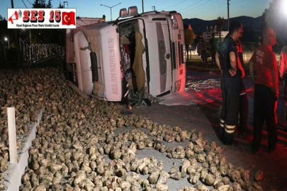 Burdur'da şeker pancar yüklü tırın devrilmesi sonucu yaralanan sürücü hastaneye kaldırıldı.