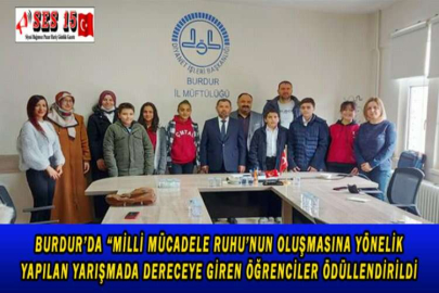 BURDUR’DA “MİLLİ MÜCADELE RUHU’NUN OLUŞMASINA YÖNELİK YAPILAN YARIŞMADA DERECEYE GİREN ÖĞRENCİLER ÖDÜLLENDİRİLDİ