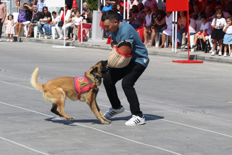 Halk oyunları gösterisinin sunulduğu törenin sonunda, İl Jandarma Komutanlığı, Muğla Gençlik ve Spor İl Müdürlüğü ve öğrenciler tören geçişi yaptı.