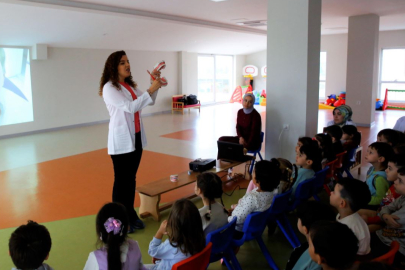 Antalya Büyükşehir Belediyesi, Ağız ve Diş Sağlığı Haftası kapsamında belediye bünyesindeki kreşlerde bilgilendirme çalışması düzenliyor.