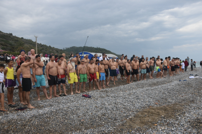 Etkinliğe katılanlar, soğuk havaya rağmen denize girdi.