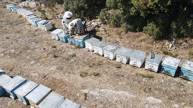 İlkbaharda farklı bölgelerde çiçek balı sağımı yapan gezgin arıcılar, Muğla'daki ormanlık alanlarda çam balı hasadı yapmaya başladı.