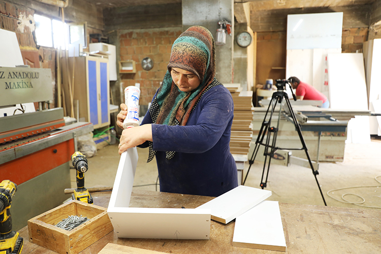 Darıçayırı Mahallesi'nde yaşayan 3 çocuk annesi Tuncer, çırak bulamayan mobilya ustası eşi İbrahim Tuncer'e yardım etmek için 4 yıl önce atölyede çalışmaya başladı.