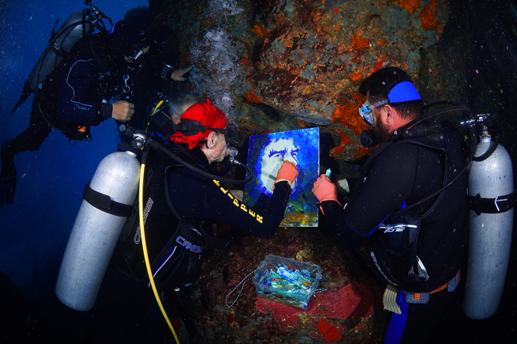 Su altındaki çalışmayı görüntüleyen Tahsin Ceylan ise su altında resim yapmanın çok iyi bir dalgıç olmanın yanı sıra çok iyi meziyetler gerektirdiğini söyledi.