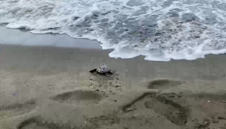Herhangi bir sağlık sorunu bulunmadığı tespit edilen caretta caretta yavrusu cankurtaran ekipleri tarafından yeniden denize bırakıldı.