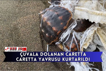Çuvala Dolanan Caretta Caretta Yavrusu Kurtarıldı
