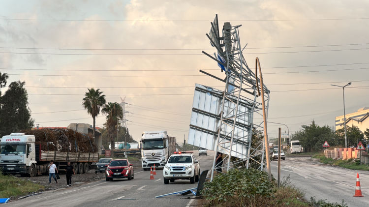 Devrilen levhalar nedeniyle yol trafiğe kapandı ve uzun araç kuyrukları oluştu.