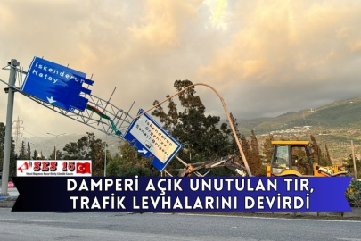 Hatay'ın İskenderun ilçesinde damperi açık unutulan tırın trafik levhalarına çarpması sonucu yol trafiğe kapandı.