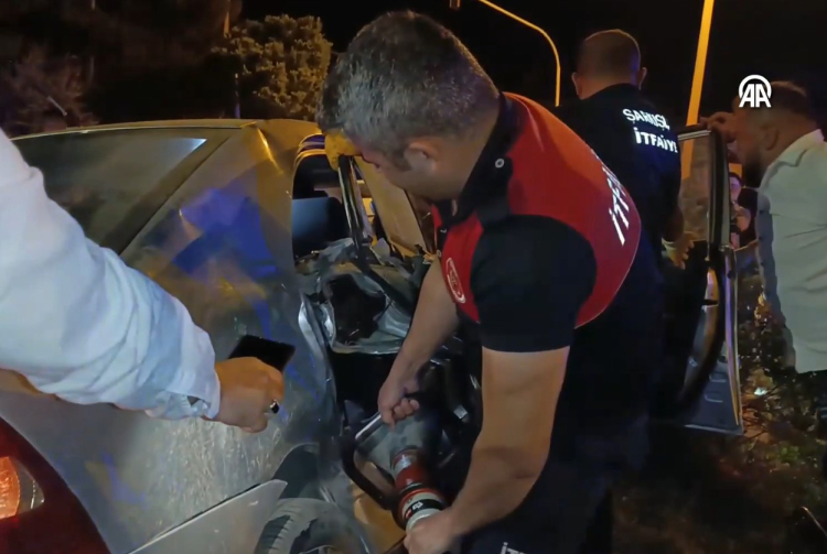 Araçta sıkışan yaralılar, itfaiye ekiplerinin çalışmasıyla çıkarıldı.