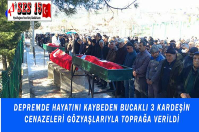 DEPREMDE HAYATINI KAYBEDEN BUCAKLI 3 KARDEŞİN CENAZELERİ GÖZYAŞLARIYLA TOPRAĞA VERİLDİ