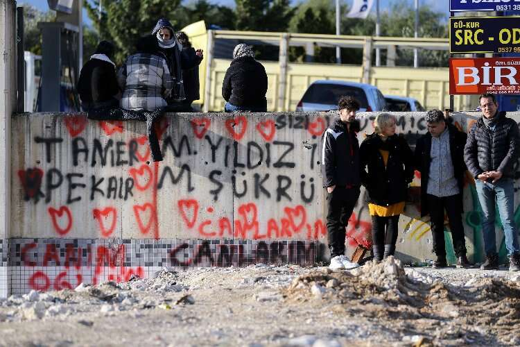 Aile yakınları, enkazdan kurtulanlar ve vatandaşlar, Kahramanmaraş merkezli depremlerde yıkılması nedeniyle 269 kişinin hayatını kaybettiği binanın bulunduğu alanda bir araya geldi.