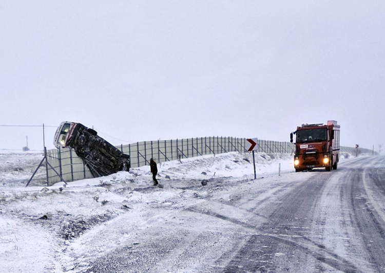 Akif Ö. idaresindeki 46 BL 658 plakalı ambulans, buzlanma nedeniyle Nurhak-Elbistan kara yolu Barış Mahallesi mevkisinde devrildi.