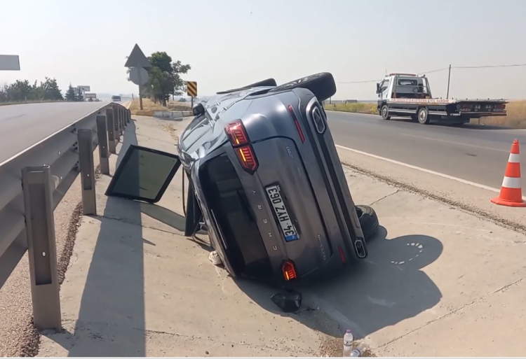 O.A. (24) idaresindeki 34 HYZ 063 plakalı otomobil, Afyonkarahisar-Antalya kara yolu Organize Sanayi Bölgesi yakınlarında refüje devrildi.