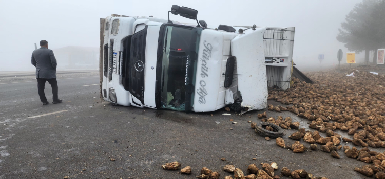 İ.T. idaresindeki 2 ANV 915 plakalı pancar taşıyan tır, Afşin-Elbistan kara yolunun Erçene Mahallesi kavşağında, sürücüsünün direksiyon hakimiyetini kaybetmesi sonucu devrildi.