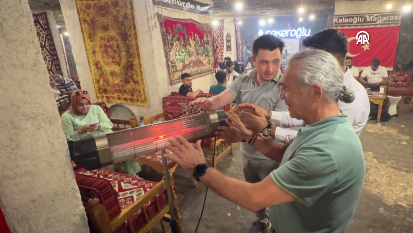 Mağara işletmecisi Mehmet Kaleoğlu, AA muhabirine, kentte 40 derece sıcaklık etkili olurken mağara kafenin 15 derece olduğunu ifade etti.