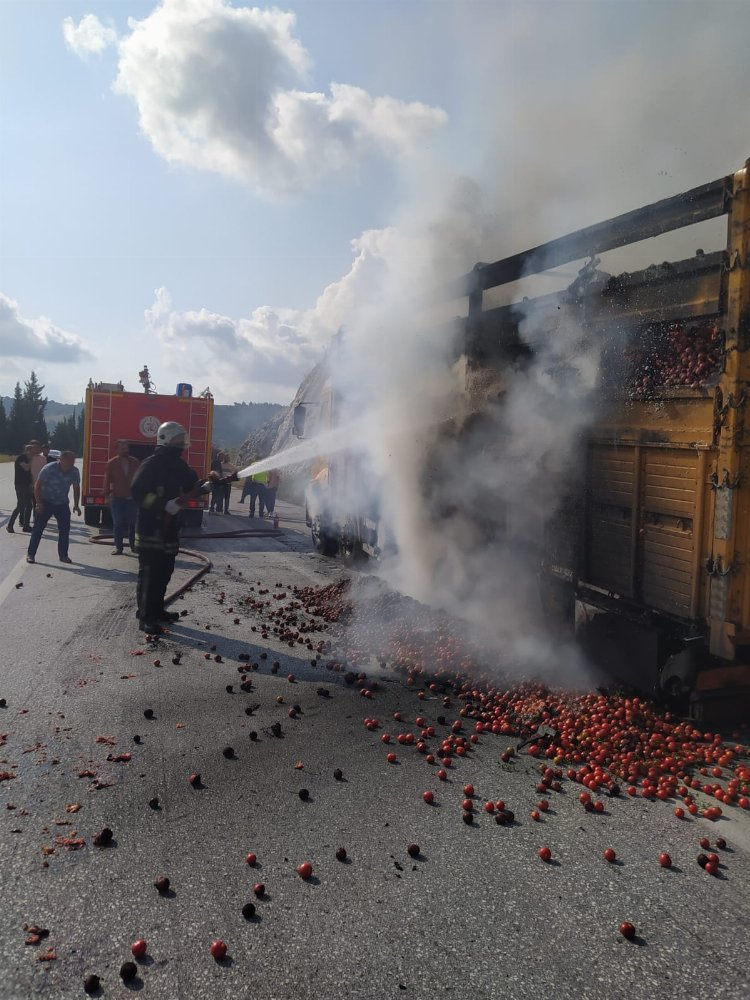 Domates Yüklü Kamyonda Çıkan Yangın