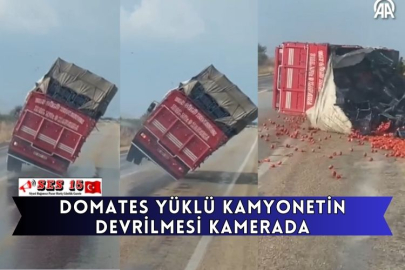 Ceyhan-Kozan kara yolunun Haydarağa Köprüsü mevkisinde hareket halindeki domates yüklü kamyonetin devrilmek üzere olduğunu fark eden başka bir araçtaki yolcu, cep telefonu kamerasıyla olayı kayda aldı.