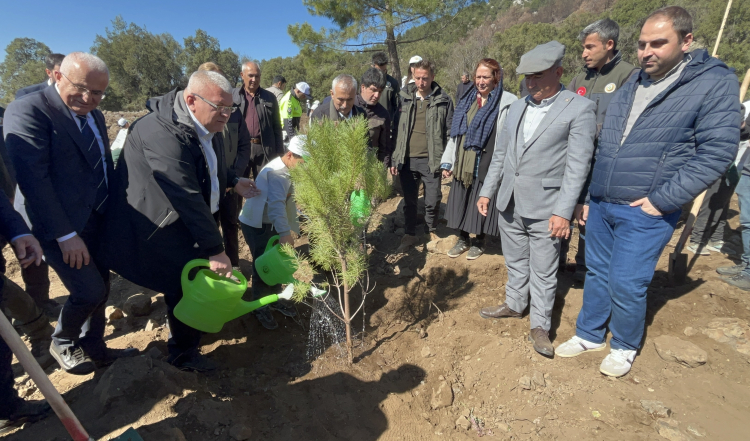 Konuşmaların ardından bölgede geçen yıl çıkan orman yangınından zarar gören alanda, defne, keçiboynuzu ve çam fıstığı başta olmak üzere yaklaşık 3 bin 500 fidan toprakla buluştu.