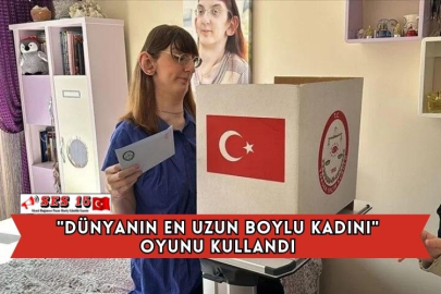 Karabük'te yaşayan, "dünyanın en uzun boylu kadını" olarak Guinness Rekorlar Kitabı'na giren Weaver sendromu hastası Rumeysa Gelgi, 31 Mart Mahalli İdareler Genel Seçimleri için oyunu kullandı.
