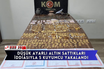 Hatay'ın Dörtyol ilçesinde, darphane basımı olmayan ve düşük ayarlı altın sattıkları iddiasıyla 5 kuyumcu gözaltına alındı.