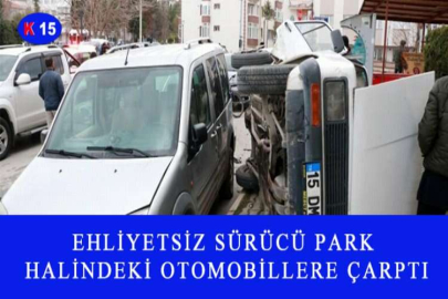 EHLİYETSİZ SÜRÜCÜ PARK HALİNDEKİ OTOMOBİLLERE ÇARPTI