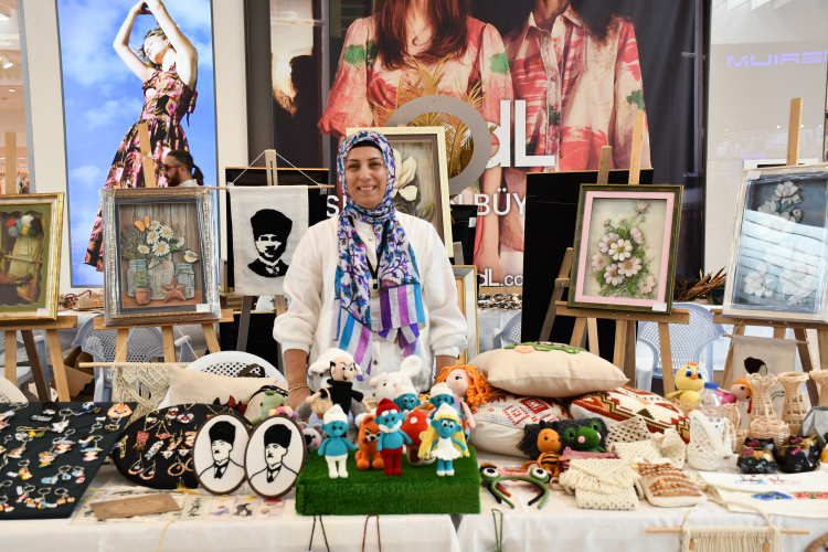 Çantalardan hediyelik eşyalara ve tablolara kadar yaklaşık 2 bin 500 ürünün yer aldığı sergi, 4 Ağustos'a kadar ziyaret edilebilecek.