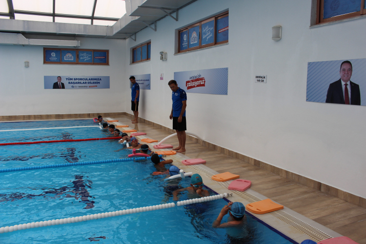 Belediyeden yapılan açıklamaya göre, Elmalı'daki Muhammed Hamdi Yazır Kültür Merkezindeki yüzme havuzunda açılan yüzme kursuna, çok sayıda çocuk katıldı.