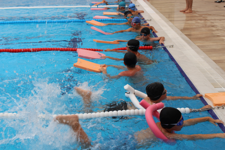Çocuklar, çeşitli oyunlar ve aktivitelerle nefes kontrolü ve yüzme becerileri kazanıyor.