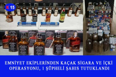 EMNİYET EKİPLERİNDEN KAÇAK SİGARA VE İÇKİ OPERASYONU, 1 ŞÜPHELİ ŞAHIS TUTUKLANDI