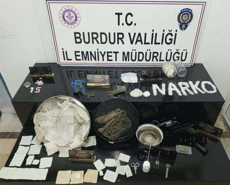 Konuyla ilgili Burdur Valiliğinden yapılan açıklama şu şekilde; “İl Emniyet Müdürlüğüne bağlı ekipler tarafından 07.12.2023 tarihinde başlayan projeli çalışma kapsamında yürütülen ve yaklaşık 3 ay süren teknik ve fiziki takip çalışmalarında yakalanan (7) şahıs hakkında Kullanmak İçin Uyuşturucu Ve Uyarıcı Madde Satın Almak, Kabul Etmek Veya Bulundurmak suçu kapsamında tahkikat yapılarak serbest bırakılmış, (7) şahıs ise Uyuşturucu veya Uyarıcı Madde İmal ve Ticareti suçu kapsamında çıkarıldığı mahkemece tutuklanmıştır. Yürütülen projeli çalışmanın sonlandırılması amacıyla 05.03.2024 tarihinde İlimiz ile Isparta ve Aydın illerinde yapılan eş zamanlı operasyon ile (7) şahıs daha yakalanarak gözaltına alınmış, 08.03.2024 tarihinde adli mercilere sevk edilen şahıslardan; (4)’ü tutuklanmış, (3)’ü ise adli kontrol şartı ile serbest bırakılmıştır. Projeli çalışma kapsamında yakalanan şüphelilerin ikamet, araç ve üzerlerinde yapılan aramalarda; yaklaşık 26.000 kullanımlık sentetik kannabinoid enjekte edildiği değerlendirilen kağıt parçası, 640 gram metamfetamin maddesi, 46 adet sentetik ecza, 5 adet hassas terazi, 40 gram skunk, 66 adet ecstasy hap, uyuşturucu madde ölçüm ve kullanımına yarayan çok sayıda aparat ile 13 adet tabanca ve 103 adet fişek ele geçirilmiştir. Kamuoyuna saygıyla duyurulur”