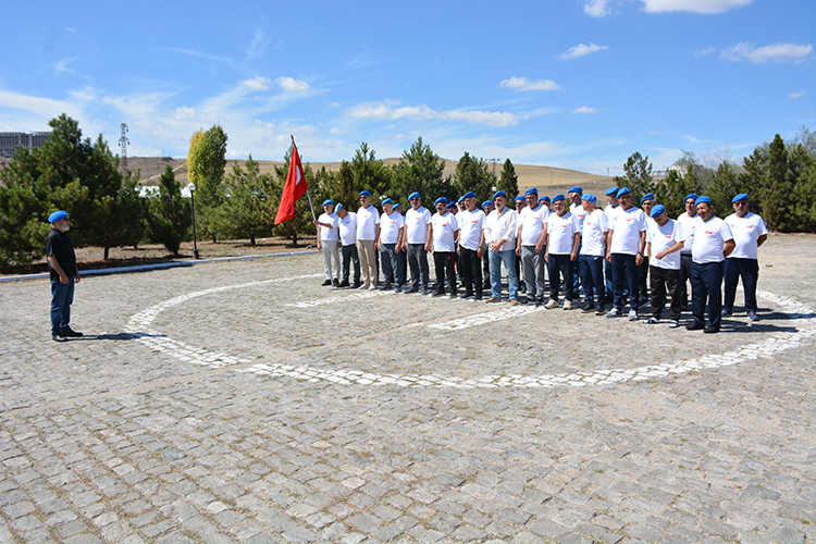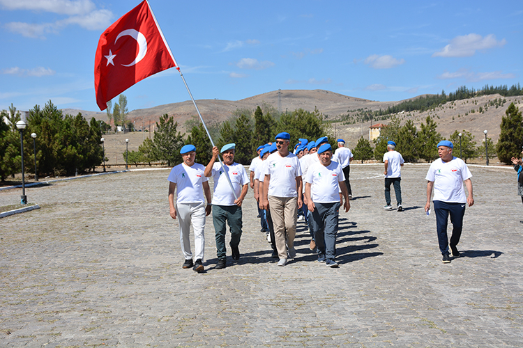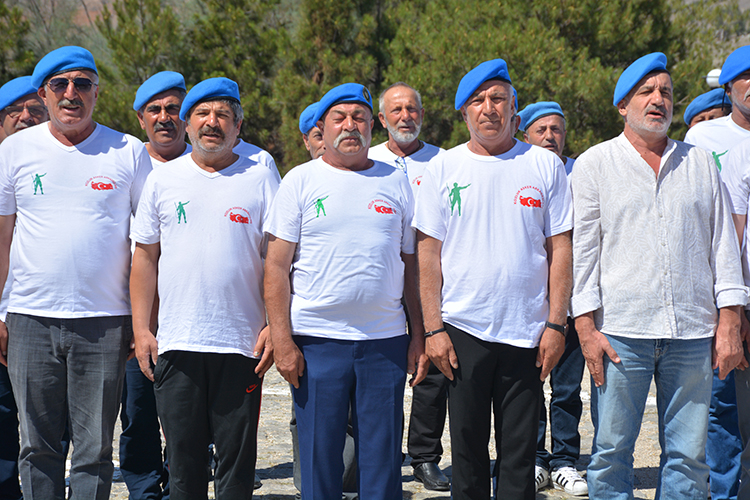 Komutanlarına, kendilerine özgü yaptırdıkları beyaz tişört ve mavi berelerle tekmil veren eski askerler, şehit ve gaziler için saygı duruşunda bulunup, İstiklal Marşı okudu.
