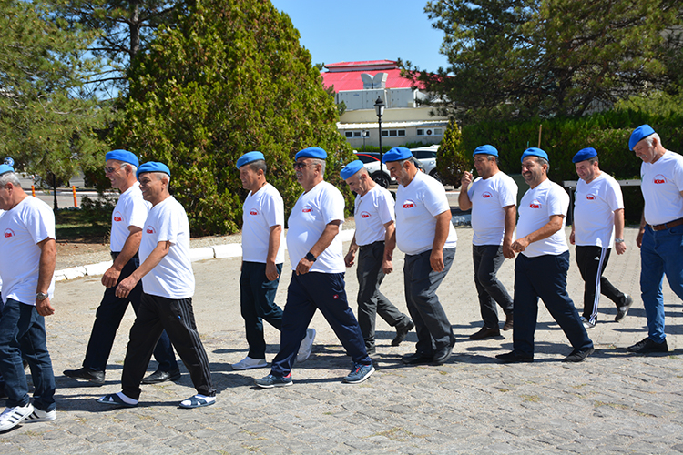 Otelin bahçesinde askeri yürüyüş yapan grup, komando marşını yüksek sesle söyledi. Bu sırada eşleri de eski askerlere destek verdi, alkışladı. Buluşmada askerlik anıları da konuşuldu.