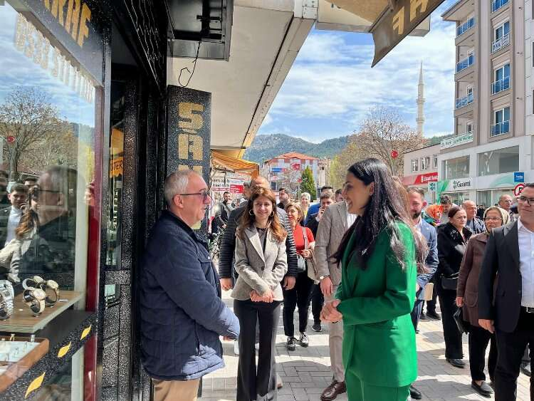 CHP Bucak Belediye Başkanı adayı Hülya Gümüş, seçim çalışmaları kapsamında Cumhuriyet Caddesi'nde esnafları ziyaret etti.