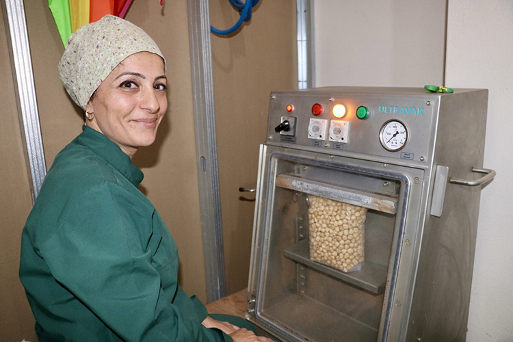 Atölyeye zar alma, ezme ve vakumla paketleme makineleri de alan Yılmaz, işlerin yoğun olduğu dönemde birkaç kişiye istihdam sağlıyor.