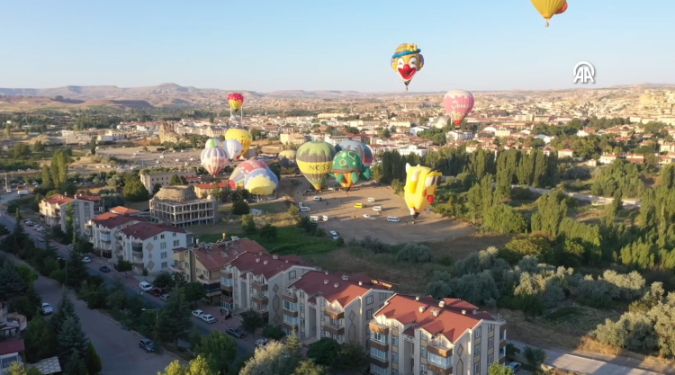 Kültür ve Turizm Bakanlığınca düzenlenen "Nevşehir Kültür Yolu Festivali"ne Türkiye'nin yanı sıra 17 ülkeden katılan figürlü sıcak hava balonları Nevşehir'in Ürgüp ilçesinde gösteri uçuşu gerçekleştirdi.