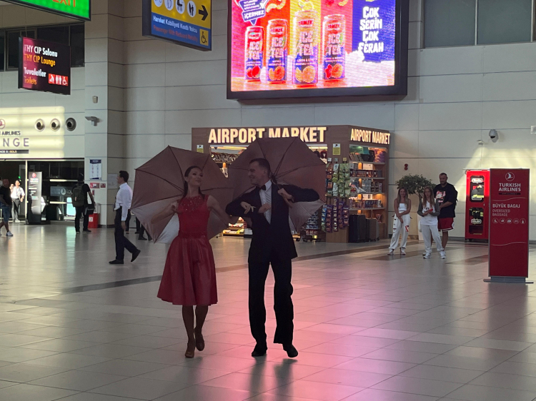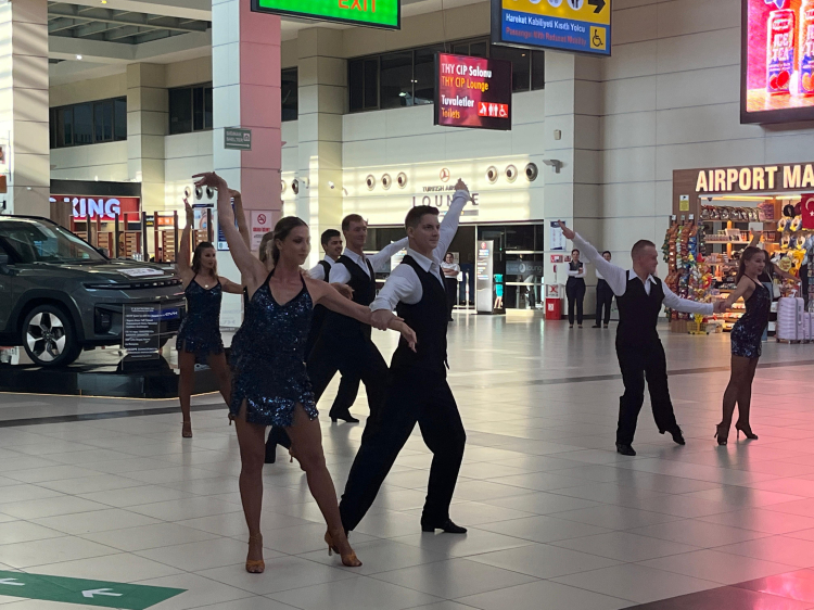 İç Hatlar Terminali giden yolcu salonunda gerçekleştirilen kutlamalarda ise dans gösterileri yapıldı.