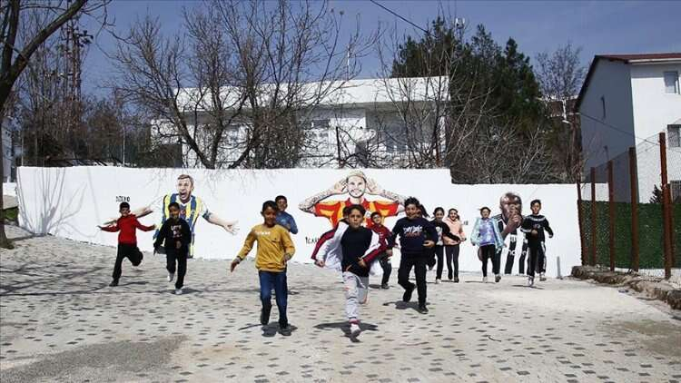 Diyarbakır'ın Eğil ilçesinde çocukların, belediye tarafından dünyaca ünlü futbol yıldızlarının resimlerinin çizildiği okul duvarı önünde çektirdiği fotoğraf milyonlarca kişiye ulaştı.