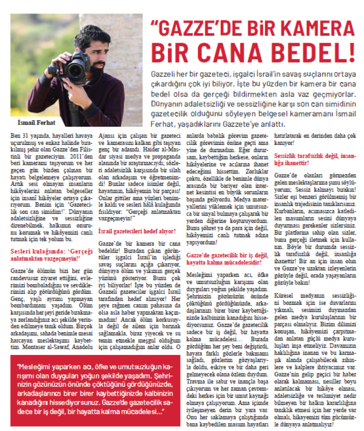 Gazze’deki soykırımı dünyaya duyurmaya çalışan gazeteciler tüm kayıplarına ve zorluklara rağmen yaşananları belgelemeye devam ediyor.