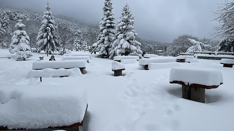 Kent merkezine 13 kilometre uzaklıktaki tabiat parkı bölgesinde 3 gündür aralıklarla devam eden yağışla kar kalınlığı yarım metreyi geçti.