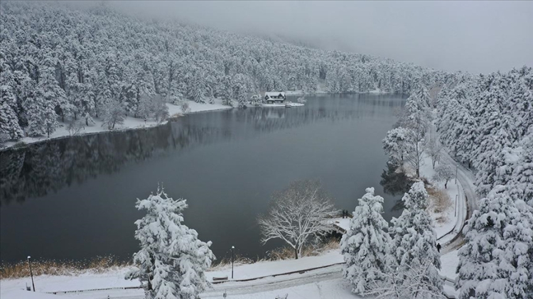 Bolu'da etkili olan kar yağışının ardından Gölcük Tabiat Parkı'nda güzel kış manzaraları oluştu.