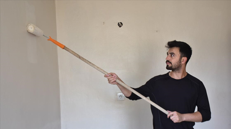 Boya ve temizlik malzemeleri temin eden görevliler ile gönüllü gençler, biri engelli 2 çocuk sahibi ailenin yaşadığı evin temizlik işlerini bitirdikten sonra duvarların tamamını boyadı.