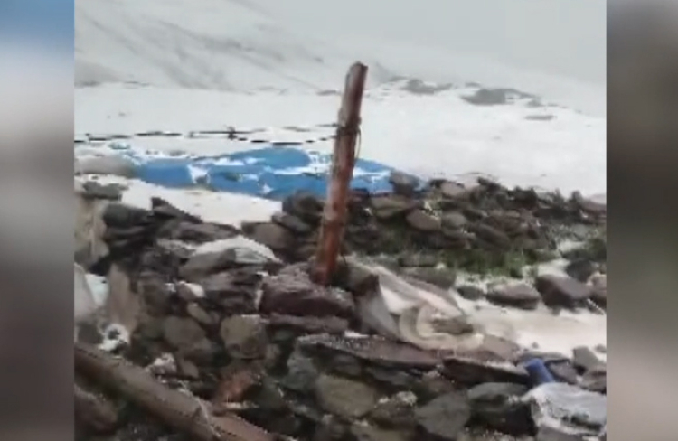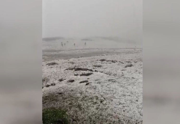 Kars’ın Selim ilçesine bağlı, Allahuekber Dağları'nda bulunan Tuygun köyü yaylasında dolu ve kar etkili oldu.