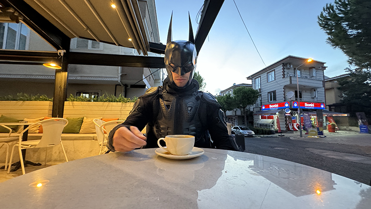 İş sonrası arkadaşlarıyla buluşmaya modifiye motosikletine binip Batman kostümü giyerek katılan Çiçek, çektiği videoları sosyal medya hesabından paylaşıyor.