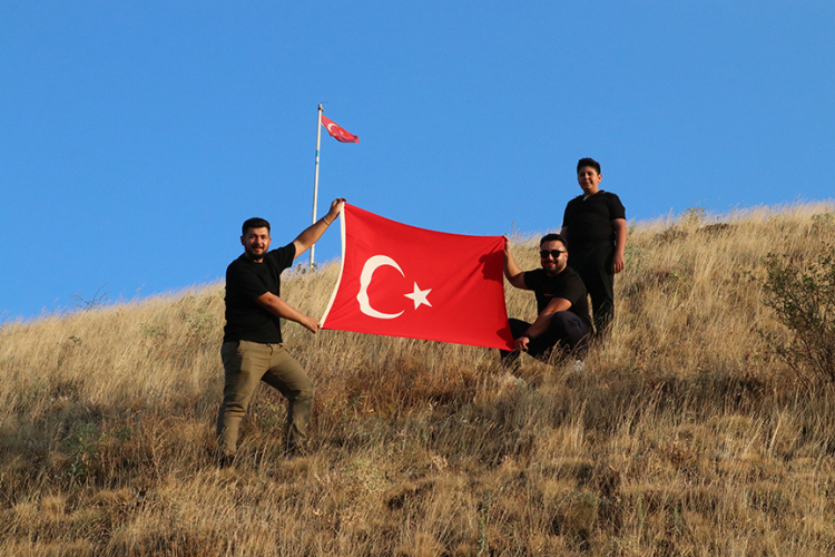 Bu yıl da 30 Ağustos Zafer Bayramı öncesi traktörle tepenin yakınına gelen gençler, zorlu tırmanışın ardından zirvedeki bayrağı yeniledi.