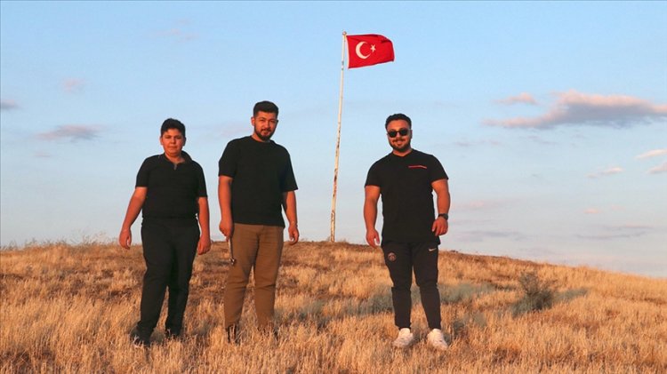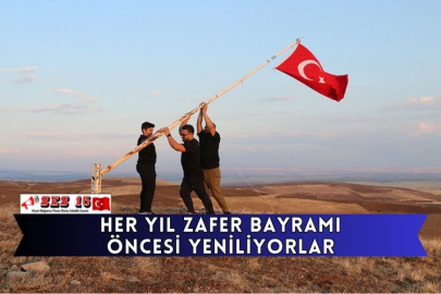 Yozgatlı gençler, köylerinin en yüksek tepesinde dalgalanan Türk bayrağını, her yıl 30 Ağustos Zafer Bayramı öncesi yeniliyor.