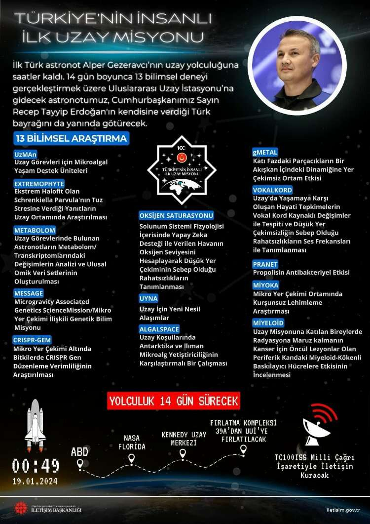 Uluslararası Uzay İstasyonu'nda yürüteceği bilimsel çalışmalarla göğsümüzü kabartacak bu görev, Türkiye’nin adını uzaya taşıyan bir gurur olarak hafızalarımıza şimdiden kazındı. " dedi.