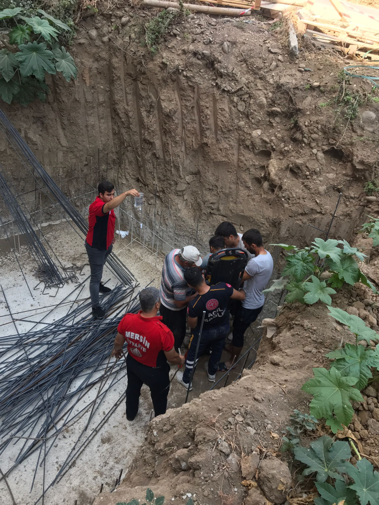 Mersin'in Erdemli ilçesinde, düştüğü inşaat temel çukurunda kasığına demir saplanan işçi hastaneye kaldırıldı.